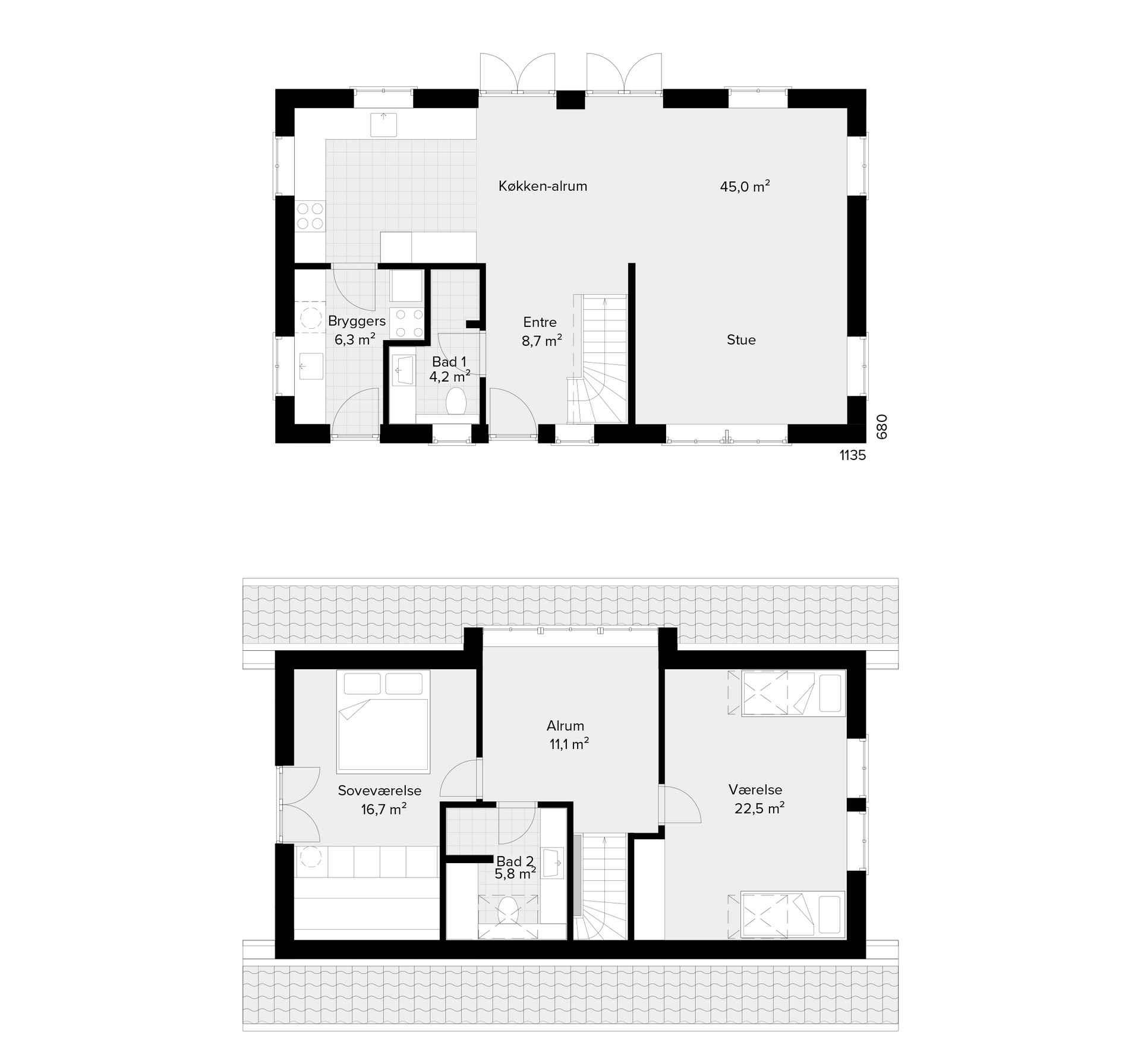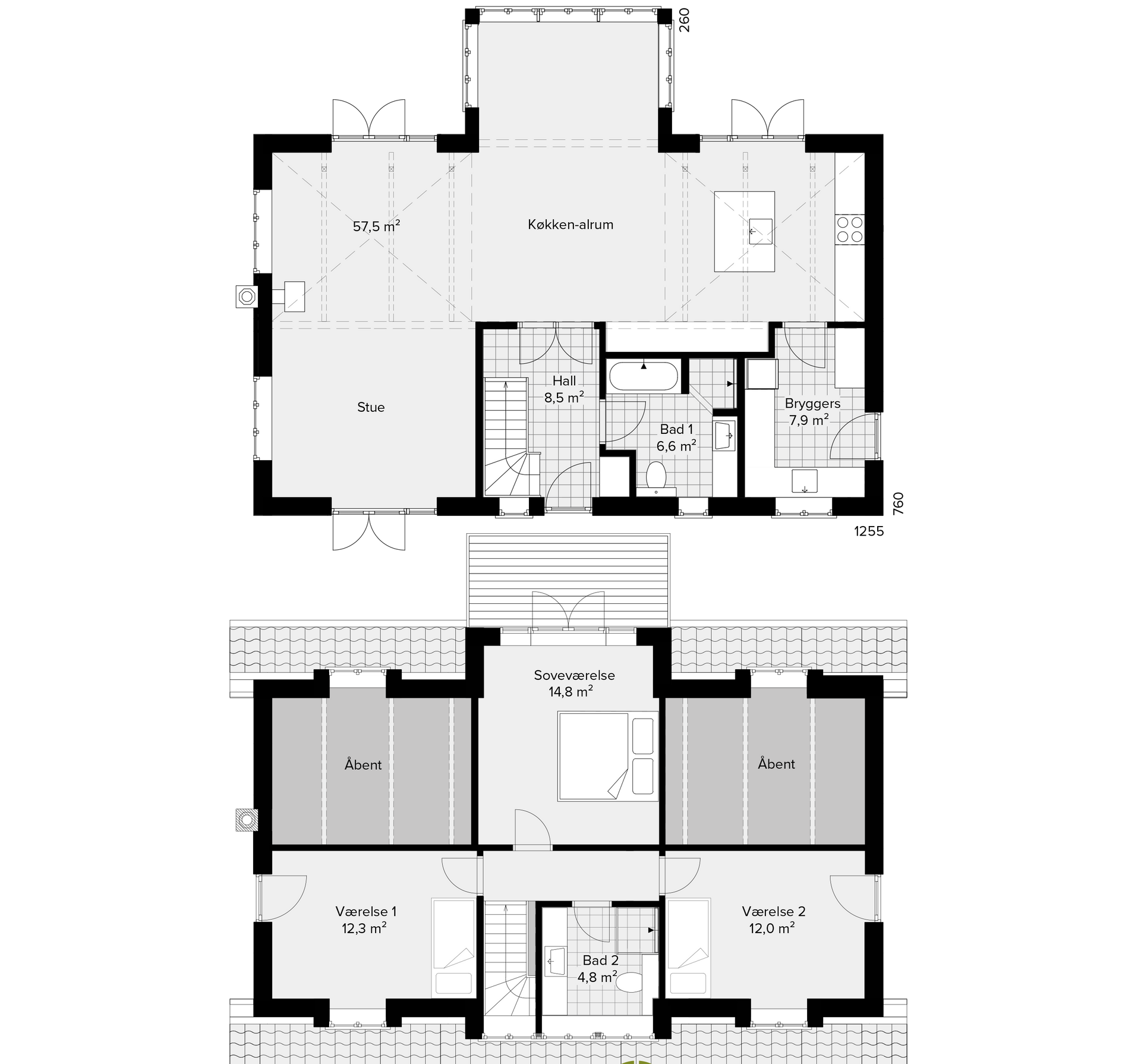 Plantegningerne viser Trelleborgs "0-energi-FRITID"® i halvanden plan