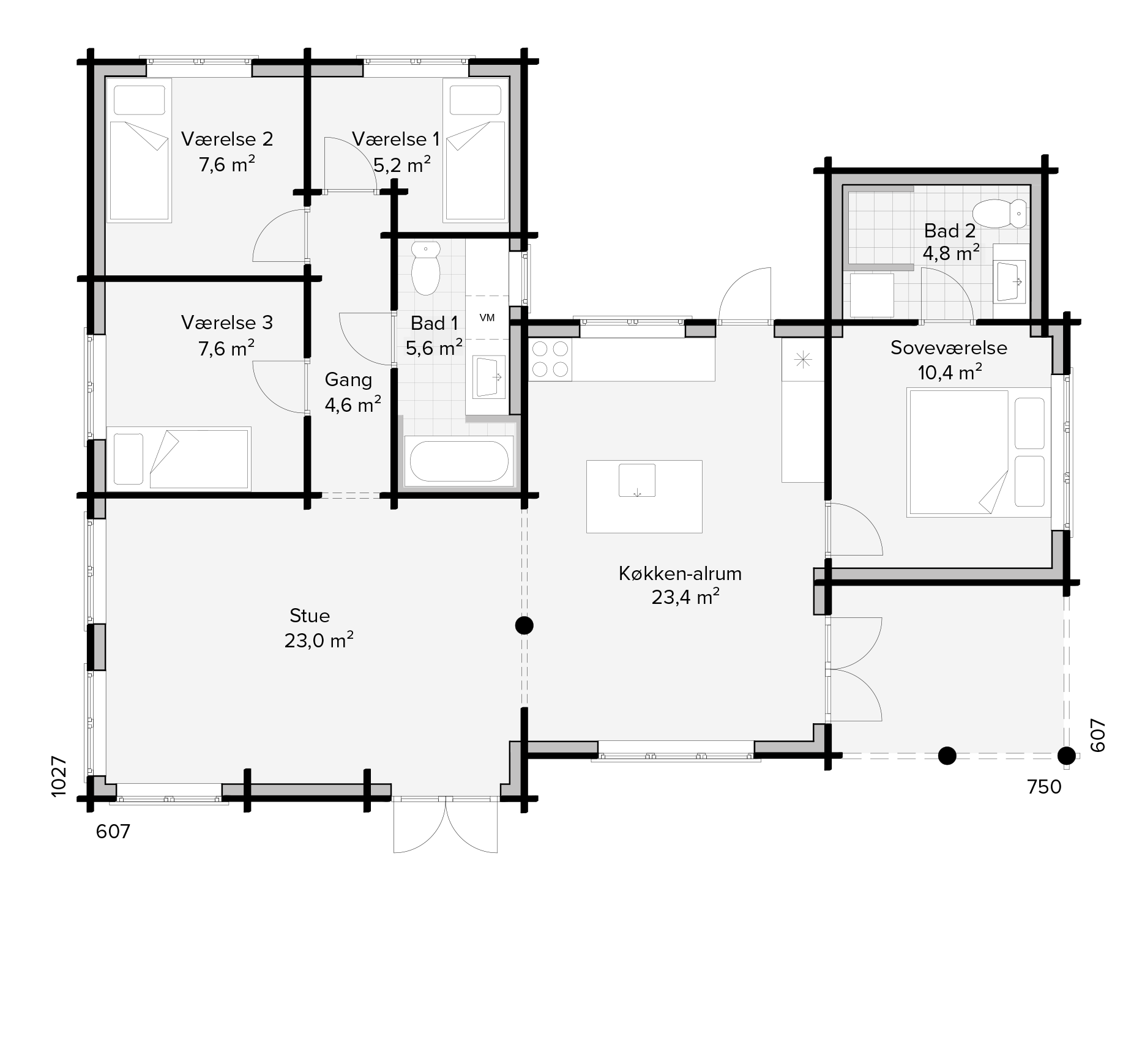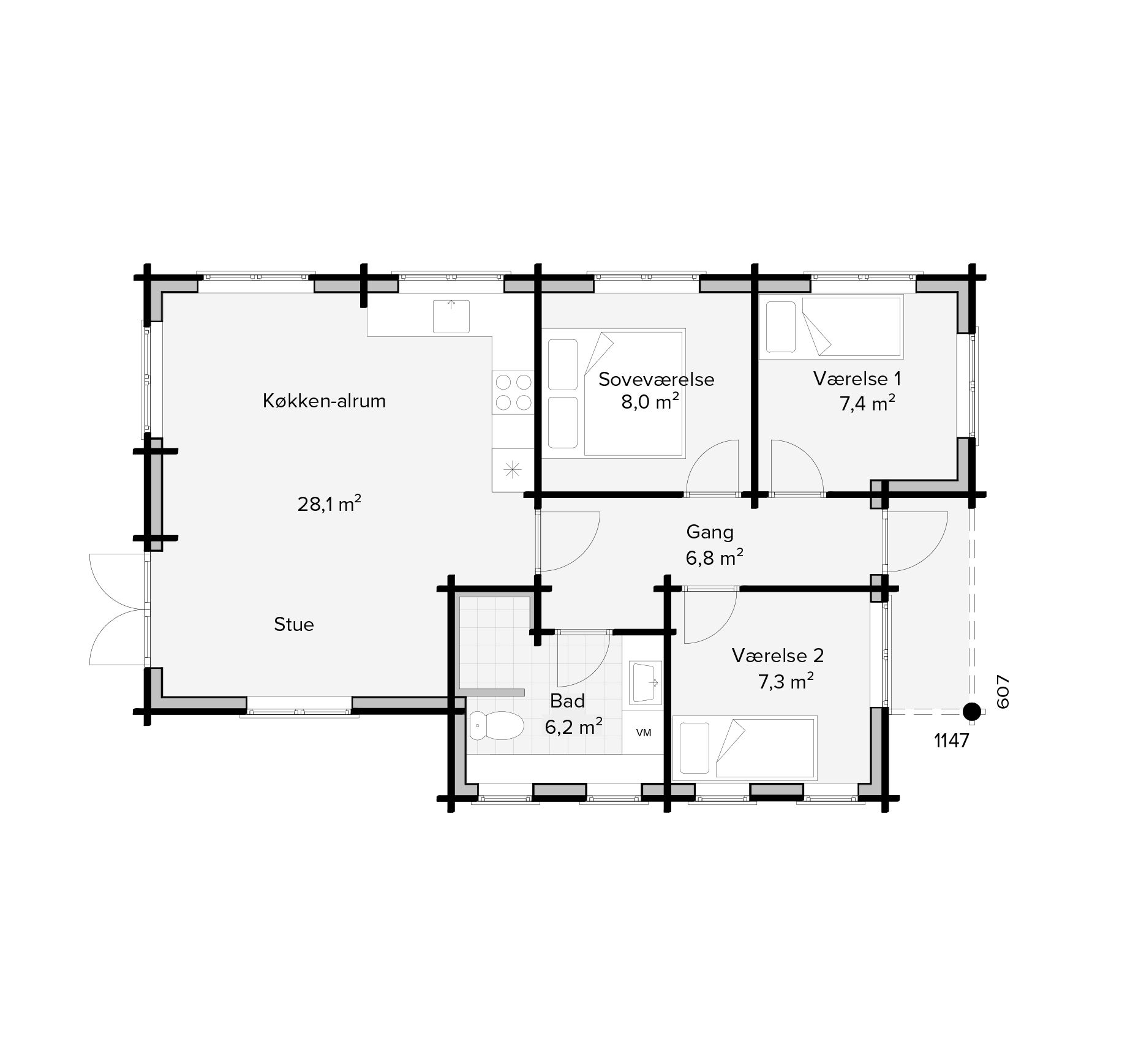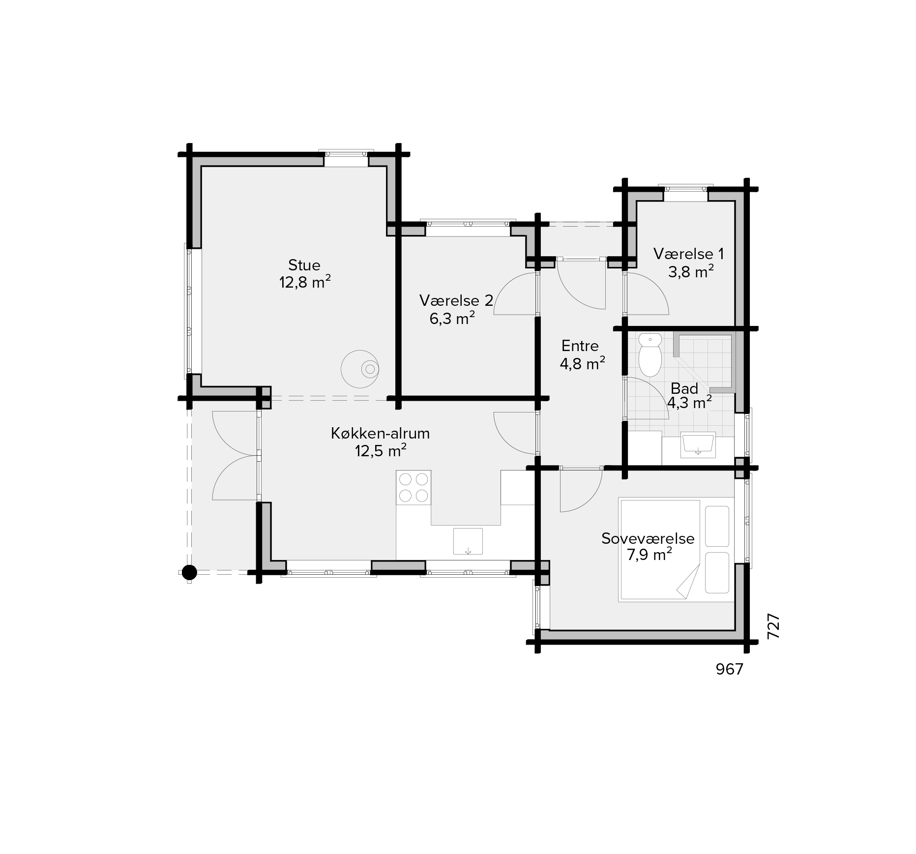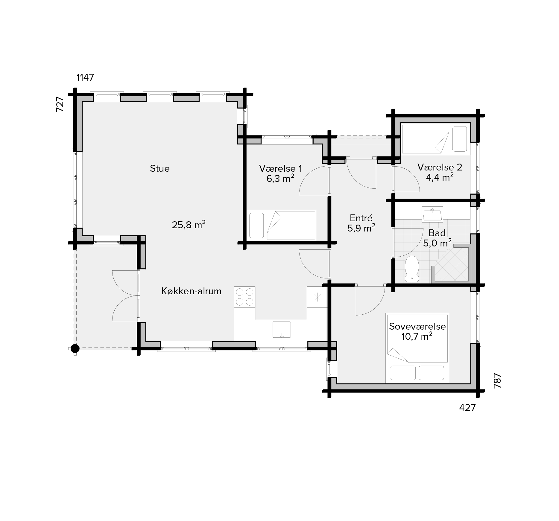 Sande Bjælkehus udføres med en taghældning på 22° med sten eller græs på taget. For yderligere information er du velkommen til at kontakte vores byggerådgivere.